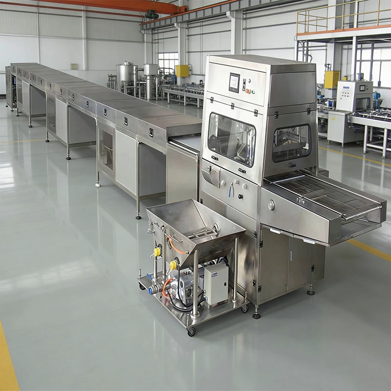 Die Schokoladenüberzugsmaschine ist eine spezielle Ausrüstung für die Herstellung verschiedener Schokoladenprodukte mit den Funktionen Vollbeschichtung, einseitige Beschichtung, Teilbeschichtung und Kühlung. -