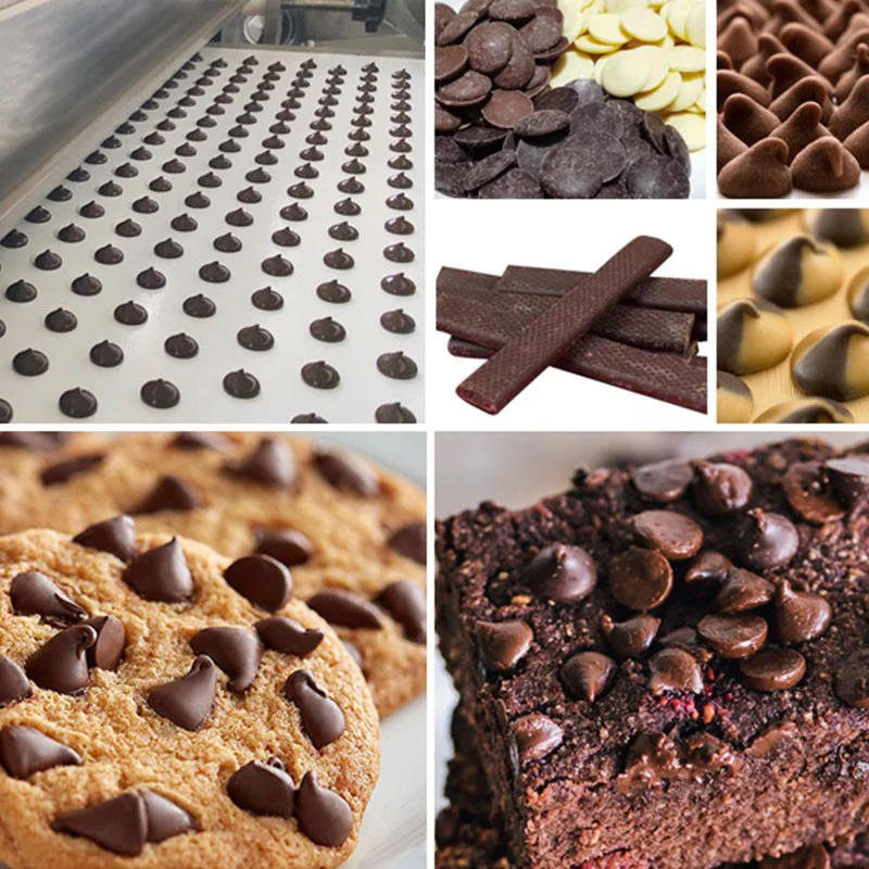 China Chocolate Drops Depositing Machine είναι ο ειδικός εξοπλισμός για την παραγωγή τσιπ σοκολάτας σε σχήμα σταγόνας ή σχήμα κουμπιού. Μπορεί να χρησιμοποιηθεί για την εναπόθεση πάστες σοκολάτας μέσω της κεφαλής απόθεσης στον μεταφορικό ιμάντα PU και τη μεταφορά των προϊόντων στη σήραγγα ψύξης για ψύξη και αυτόματη αποβολή. Έχει πλεονεκτήματα ακριβούς καθορισμού ποσοτήτων, εύκολης λειτουργίας και μεγάλης παραγωγικής ικανότητας.