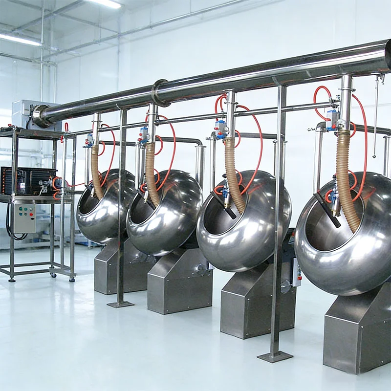 Cina Fornitori di lucidatrici automatiche per cioccolato viene utilizzato per rivestire cioccolato o zucchero sulla superficie di alimenti granulari, come arachidi, mandorle, pillole, semi di melone sgusciati ecc. Viene utilizzato anche per lucidare il cioccolato in diverse forme, dopo la lucidatura il cioccolato è eccellente in lucentezza, colore e forma.