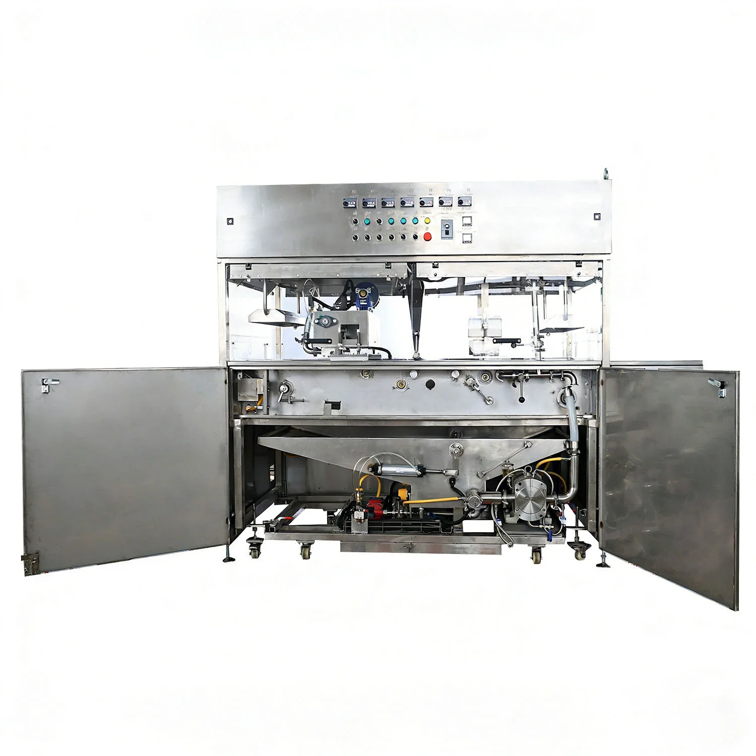 La macchina per ricoprire il cioccolato è l'attrezzatura dedicata per la realizzazione di prodotti di cioccolato assortiti con funzioni di rivestimento intero, rivestimento su un solo lato, rivestimento parziale e raffreddamento. -