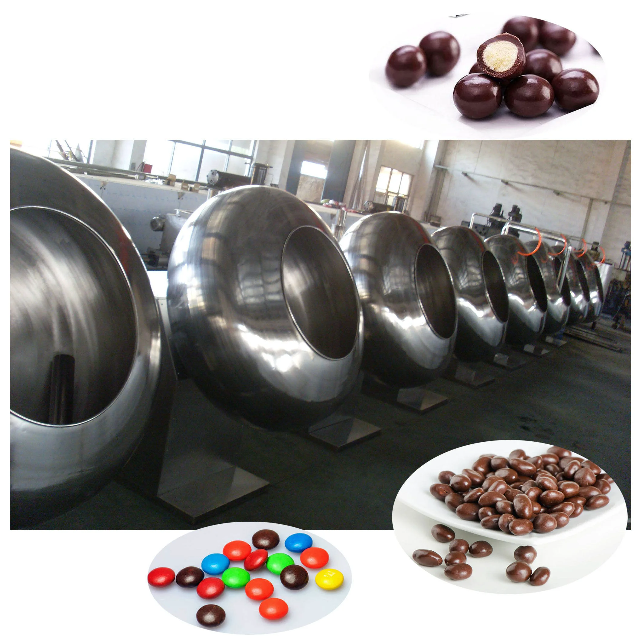 땅콩, 아몬드, 알약, 껍질을 벗긴 멜론 씨앗과 같은 세분화 된 음식의 표면에 초콜릿이나 설탕을 코팅하는 데 사용됩니다. 초콜릿은 초콜릿을 다른 모양으로 연마하는 데 사용됩니다. 연마 후 초콜릿은 광택, 색상 및 모양이 우수합니다.